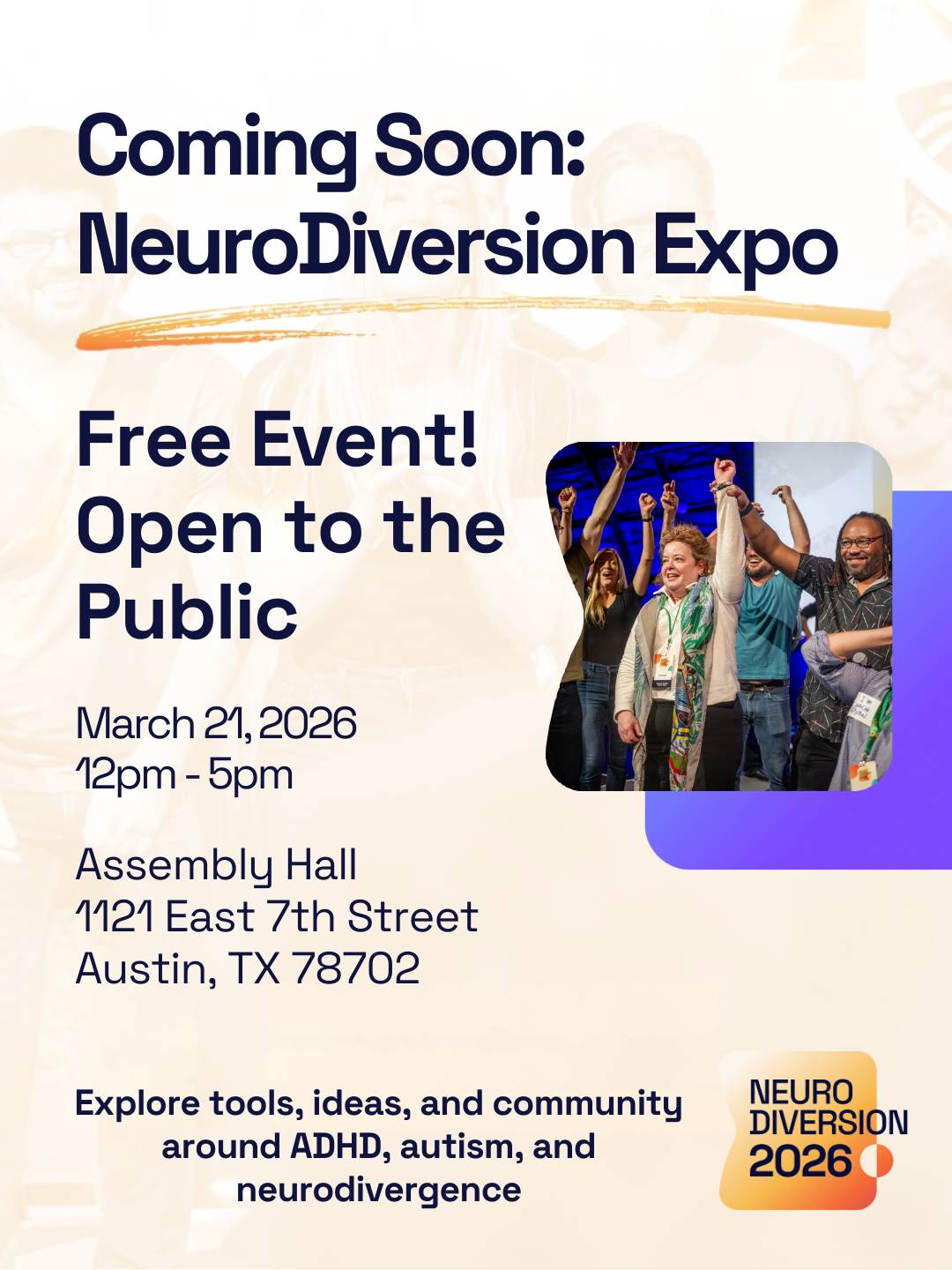 Hey there, NeuroDiversion 26 is .... next week! Time to start thinking about packing for your trip to Austin. What to Bring Layers! Austin weather can be unpredictable in March. Expect warm days (70s–mid-80s °F / low-20s to around 29 °C), but bring a light jacket for evenings or rain showers Comfortable shoes for walking between sessions and exploring the nearby area Favorite snacks especially if you have dietary needs or like comfort foods. (If you need to buy more on site, there's a Whole...